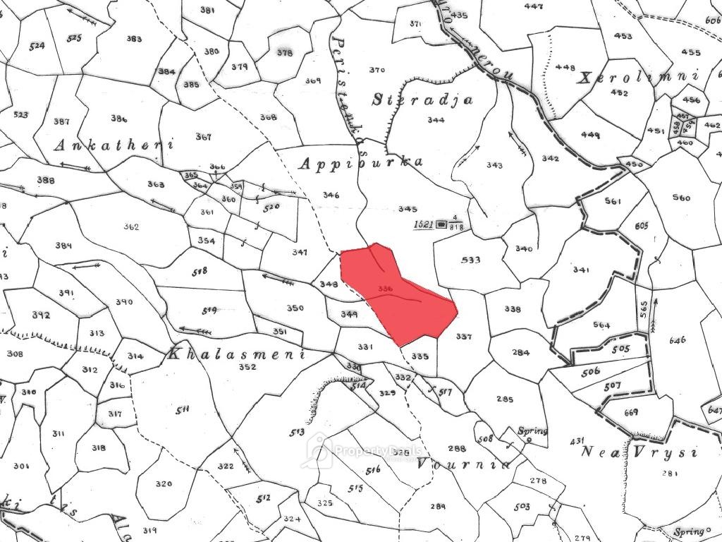 Agricultural field in Fyti community of Paphos district. It is situated at a distance approximately 1.3 km nortwest of the community center and approximately 850 m west of Saint George church.