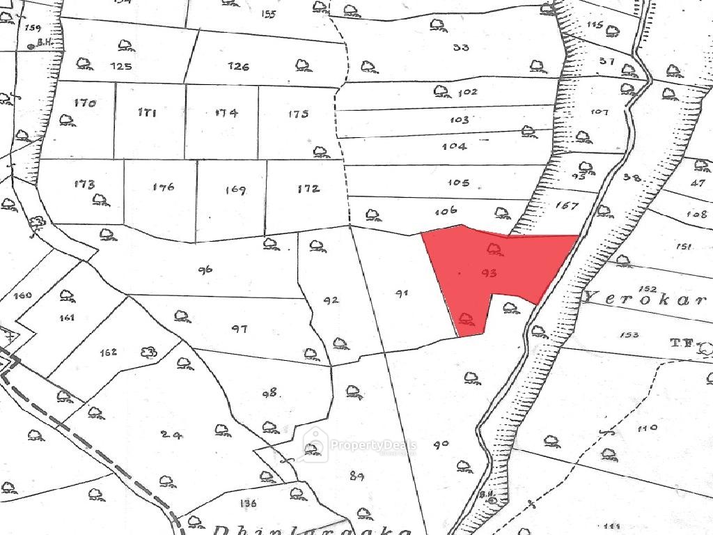 It has an irregular shape with an inclined surface and it is landlocked. The property is located approximately 530 meters east of the nearest registered road.