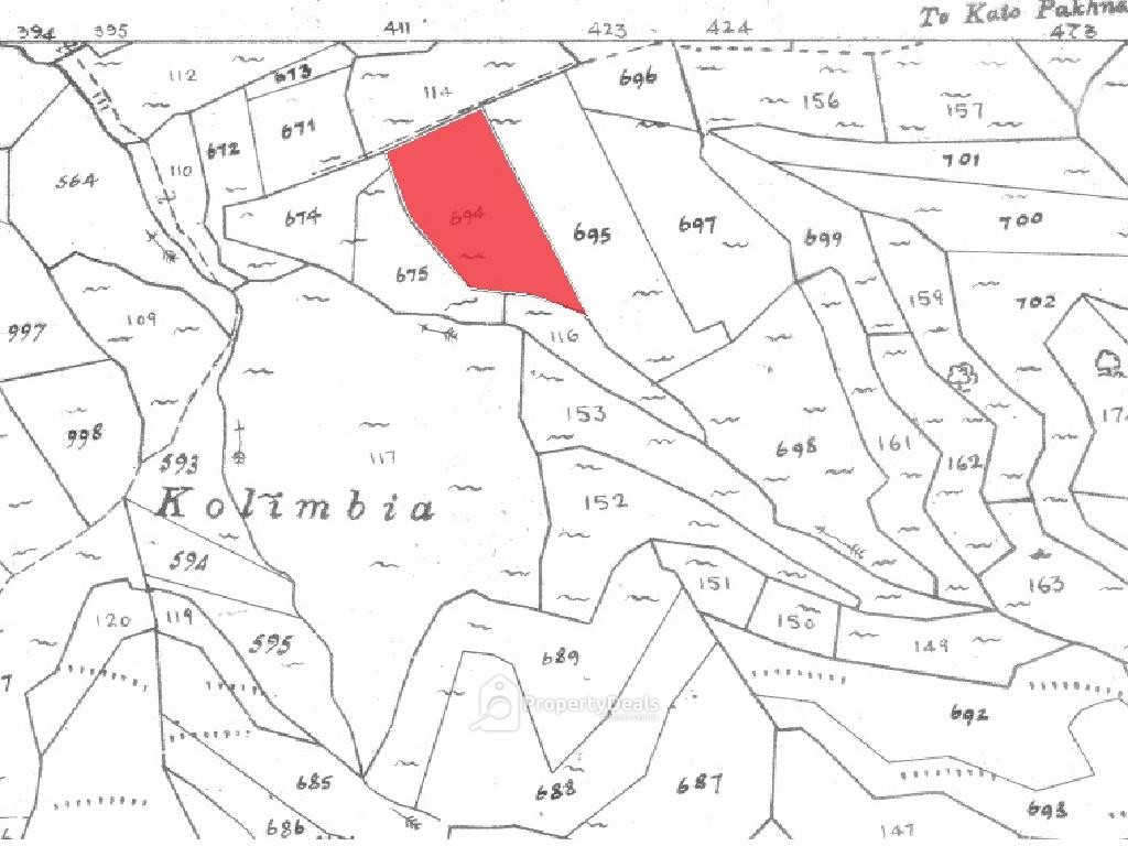 Agricultural field in Pachna village, in Limassol District. The property is located about 1.5 kilometers northwest of the center of the community and about 1.2 kilometers north of the main road connecting the villages of Pachna and Anogyra.