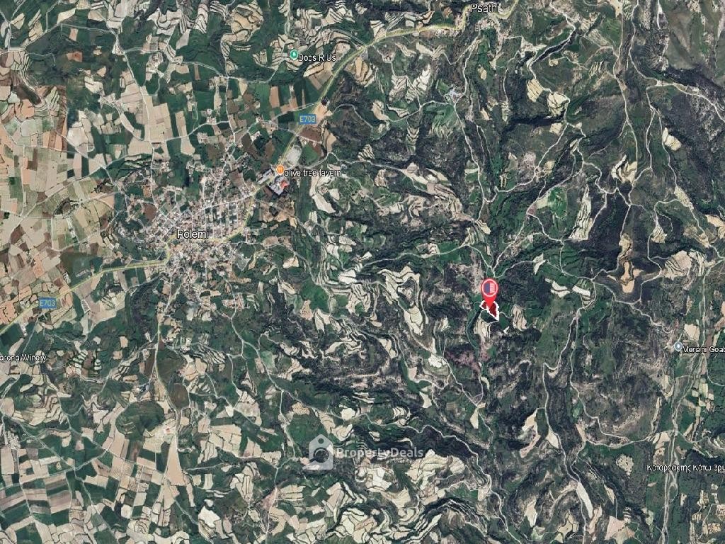 The property for sale concerns 2 adjacent agricultural fields, in Polemi Community of Paphos District. The property is located approximately 2 km east of the Community’s center and approximately 1.8 km southeast of Polemi Gymnasium.