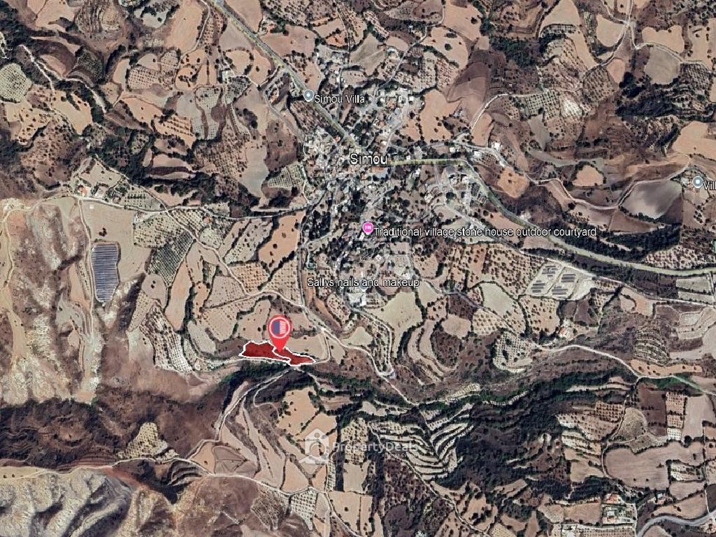 The property for sale concerns 2 agricultural abutting fields, in Simou Community, in Paphos District. The property is located approximately 580 meters southwest from the community center and approximately 1.4 kilometers west from Lasa – Simou road connection.