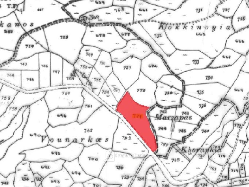 Agricultural field in Thrinia community of Paphos district. It is situated at a distance approximately 650 meters northwest of the community center and approximately 400 m northwest of the community’s elementary school.