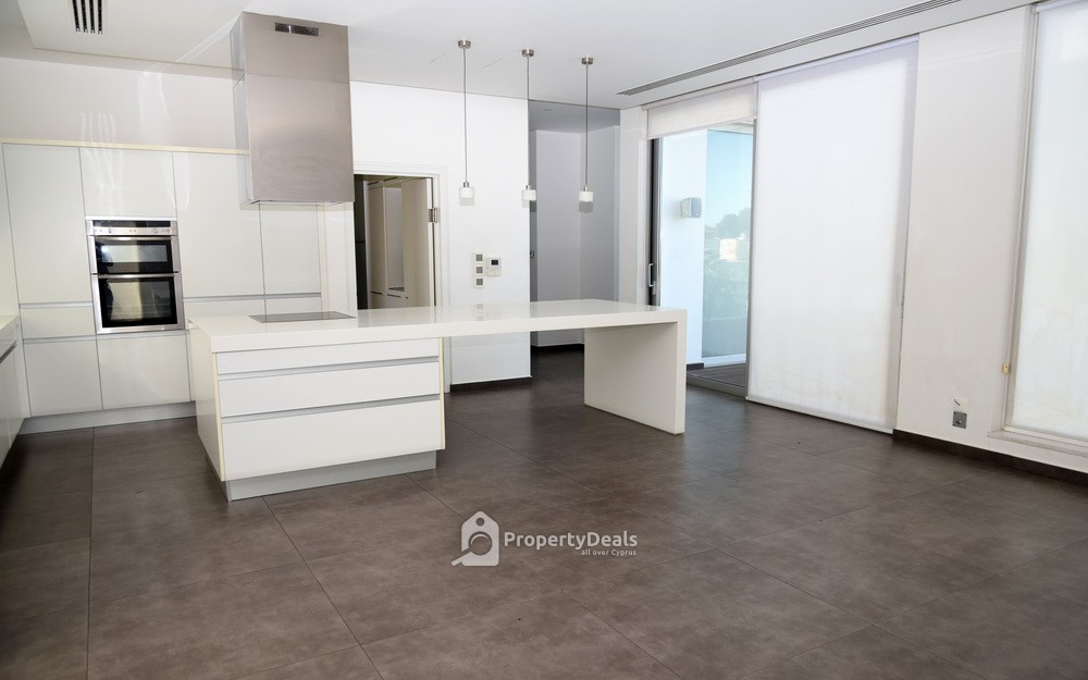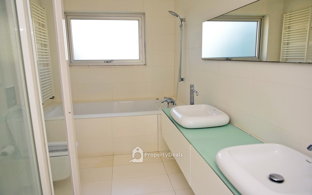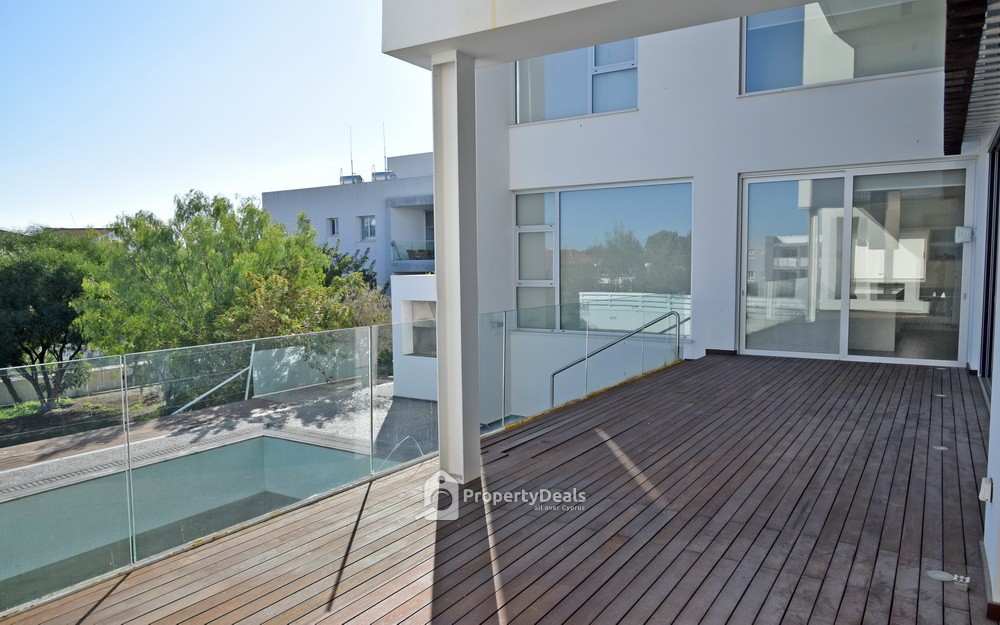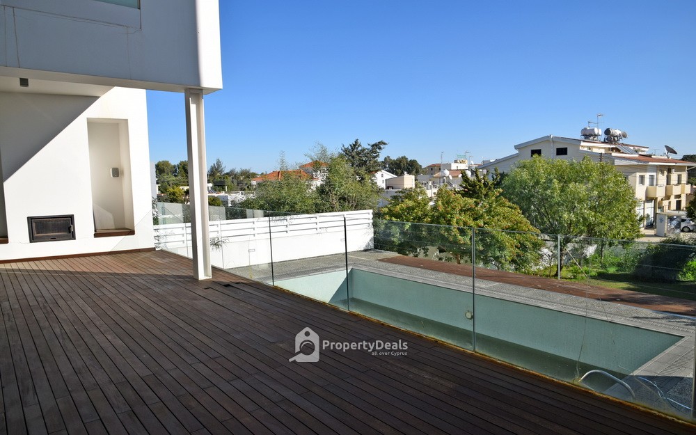 The property has an area of 345sqm. The ground floor consists of a living room, a dining room, an office, a guest toilet, a kitchen and sitting area. The second floor consists of four en-suite bedrooms (one of them with walking closet and hot tub), a small kitchen and laundry room. There is also a basement of 149sqm accessible via both an internal and an external staircase. It consists of an office, gym area, a cellar, two storage rooms, a bathroom, sauna with changing room and a laundry room. The house has double glazed windows, a swimming pool, a fireplace, and VRV type air condition, underfloor heating and central security system.