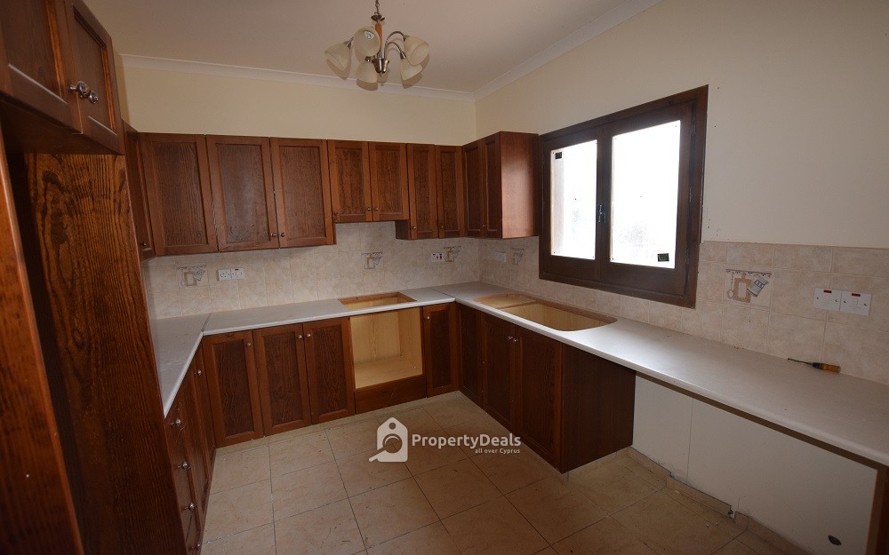 The property has an area of 100sqm. It comprises of an open plan living/dining and kitchen area, three bedrooms and a bathroom. The house features double glazed windows, ceramic flooring and provisions of split units and central heating.