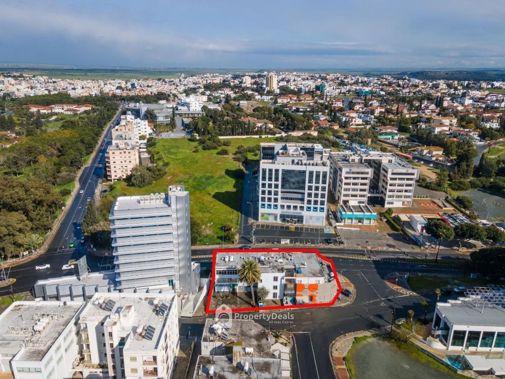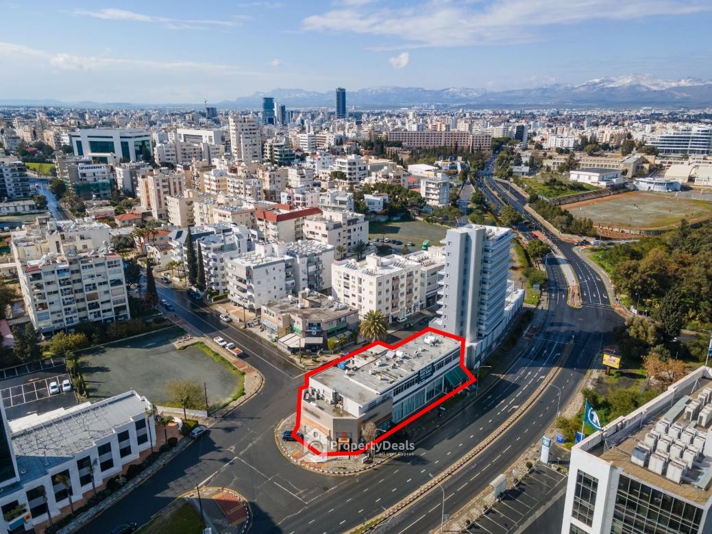 The building is called 'Wights Tower' and is a mixed-use building. It has a prime location on Limassol Avenue. The ground floor has three retail units with a total area of over 500m2 and a total area of over 260m2. The first floor contains an apartment of 134 square meters and a vacant office area of 252 square meters.