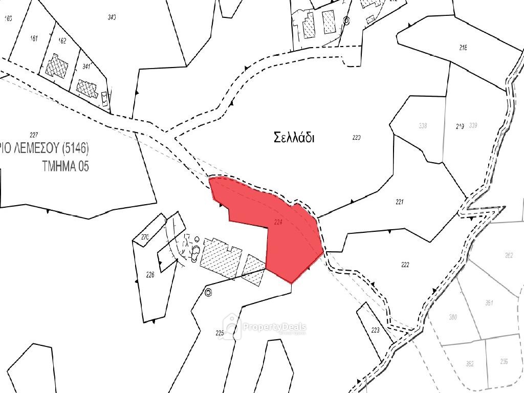 Residential field in Kalo Chorio community of Limassol district. It is situated at a distance approximately 530m southwest of the community center and approximately 600m southeast of the community's Elementary School.