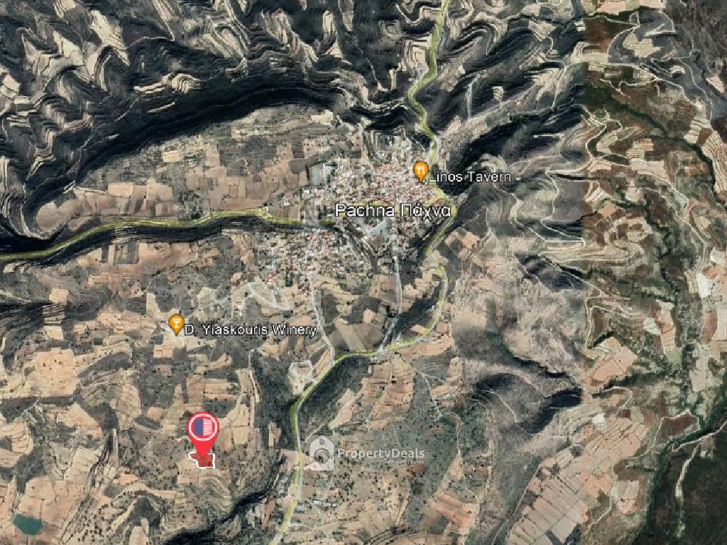 Field in Pachna village, in Limassol District. The property is located about 1.5 kilometers southeast of the center of the community and about 450 meters west of the main road connecting the villages of Pachna and Prastio.
