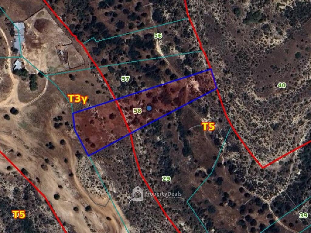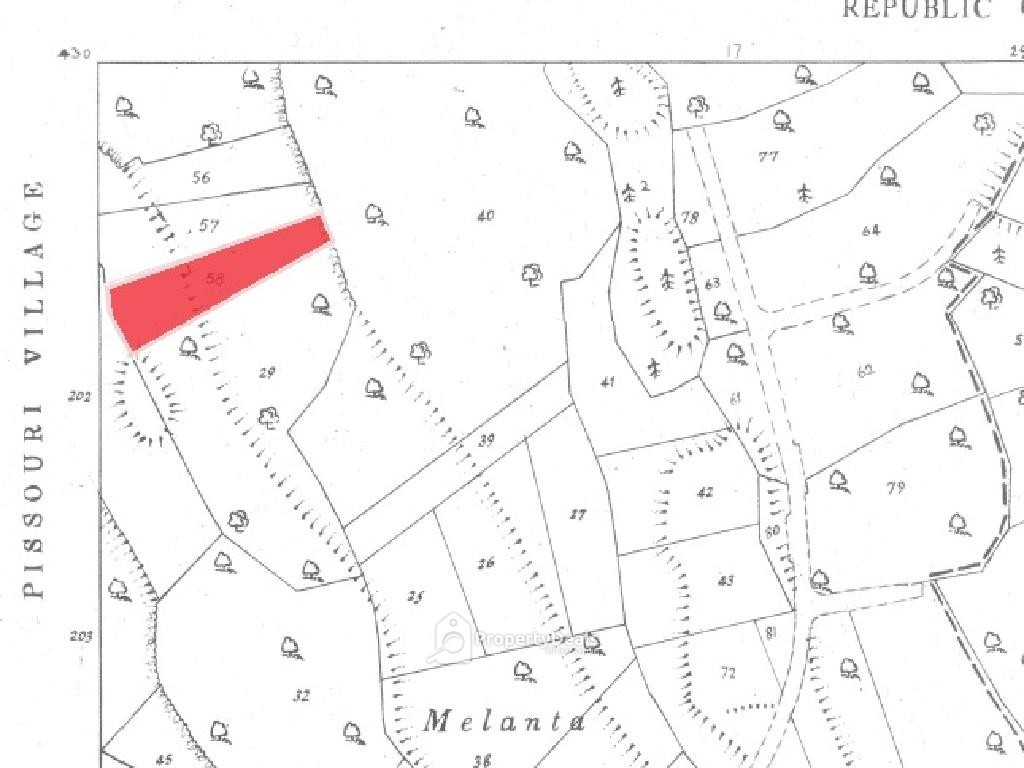 Tourist field in Pissouri village, in Limassol district. It is situated approximately 1.8 kilometres northeast of the hotel 'Columbia Beach Resort' and approximately 950 metres north of the beaches in the surrounding area. The property has almost rectangular shape and uneven and slopping surface.